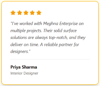 At Meghna Enterprise, we specialize in creating premium solid surface solutions that blend traditional craftsmanship with modern aesthetics. With over 15 years of experience, we have established ourselves as a trusted name in the industry, serving homeowners, interior designers, architects, builders, and religious institutions.